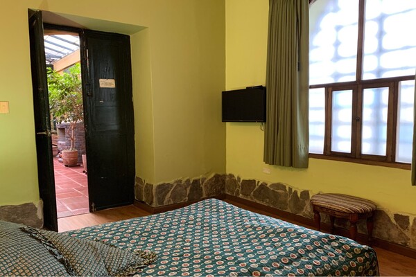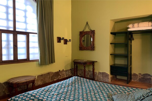 Confortable habitación tipo colonial con cama doble y o matrimonial, Espacios acogedores para que descanses en la más tradicional hacienda de la región.