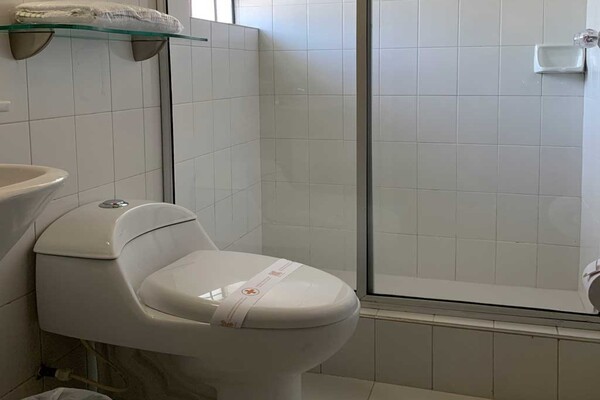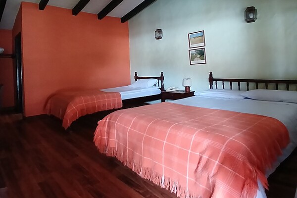 Habitación adecuada con cama doble y una cama sencilla, acogedora habitación tipo familiar.