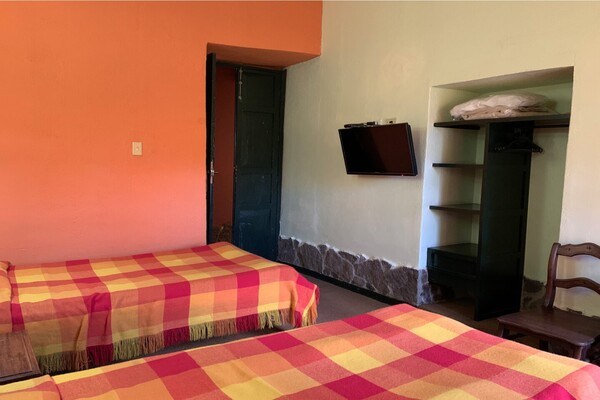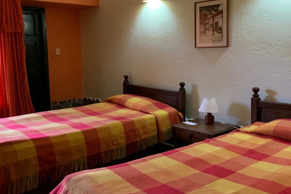 Una confortable habitación tipo colonial con dos camas sencillas.