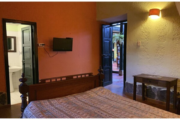 Confortable habitación tipo colonial con cama doble y o matrimonial.